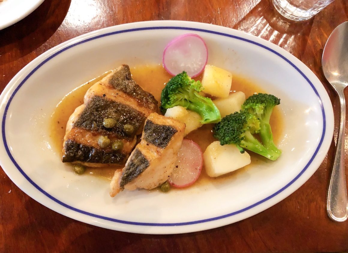 オードブルはカルパッチョと豚肉のメンチカツ、メインはマダイのソテーのバターソースがけを選びました。